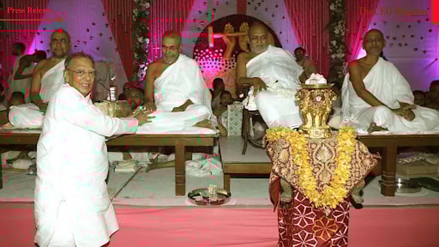 Over 5,000 devotees gathered inside a massive 14,000 sq. ft. pandal, with several dignitaries including Mangal Prabhat Lodha and Bharat Shah, along with many guests, marking their presence. The event was sponsored by renowned philanthropist Shri Babulalji Mishrimalji Bhansali.